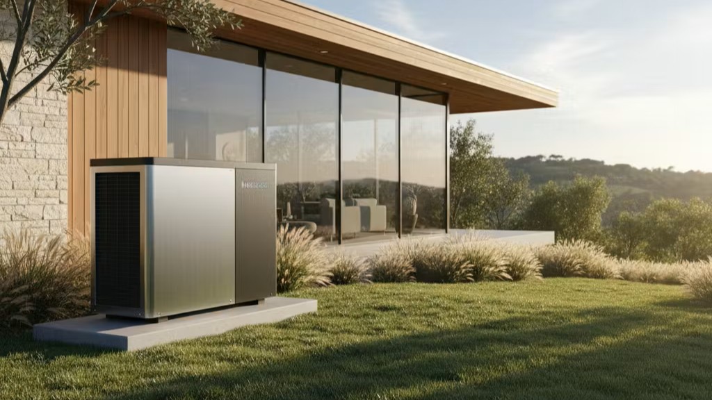 Die Außeneinheit saugt die Außenluft an und extrahiert ihr die Wärme, um dein Haus und Warmwasser zu heizen.